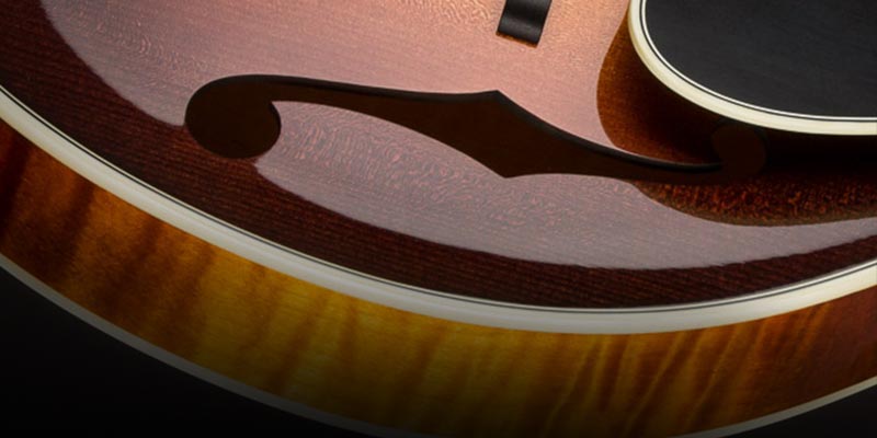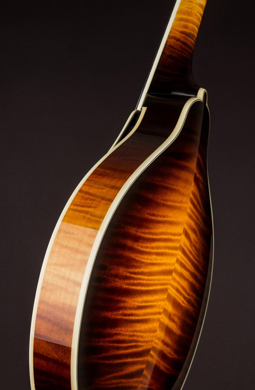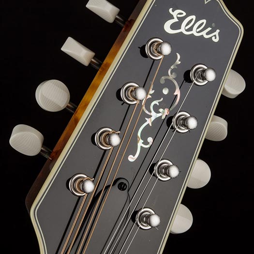 The A5 Deluxe features all of the same materials, specifications, and finishing as the A5 Special, and features silver hardware, nickel frets, and is double bound. Featuring the signature Ellis tone, the A5 Deluxe sounds unquestionably richer, sweeter, and has more sustain that the typical Loar voice found in many contemporary instruments. For the player looking for a more modern sound, the Ellis A5 Deluxe is a unique instrument with a unique voice. | • |